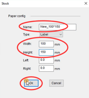Select or input label width and height that matches label size installed in printer in prompt window.